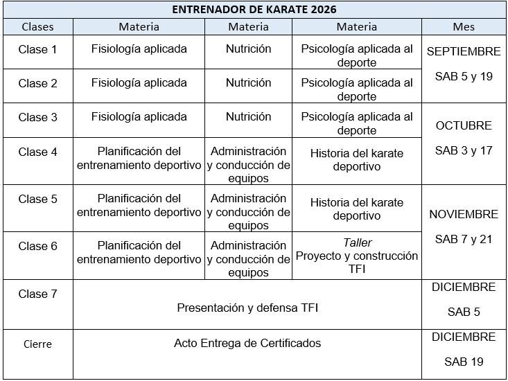 Es un programa académico que pretende asociar las ciencias biopsicosociales al conocimiento empírico específico de karate deportivo a través de la acción educativa, proveer a los cursantes de conceptos teóricos claves y herramientas avanzadas para el desarrollo de la planificación, aplicación y la conducción de los atletas en el entrenamiento.
